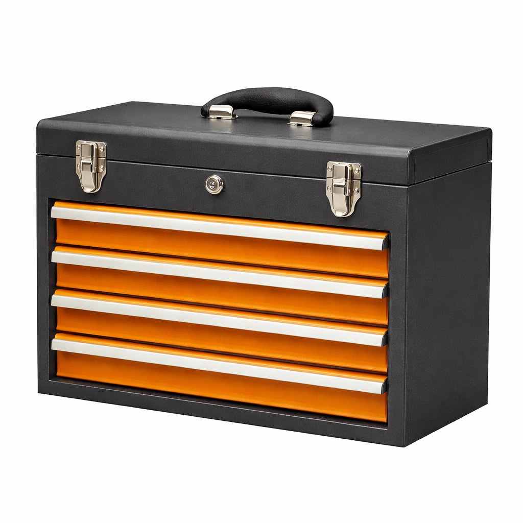 Werkzeugkiste Stahl Schwarz Orange mit 4 Schubladen