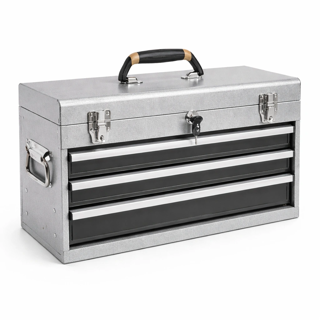 Werkzeugkiste Stahl Silber Schwarz mit 3 Schubladen