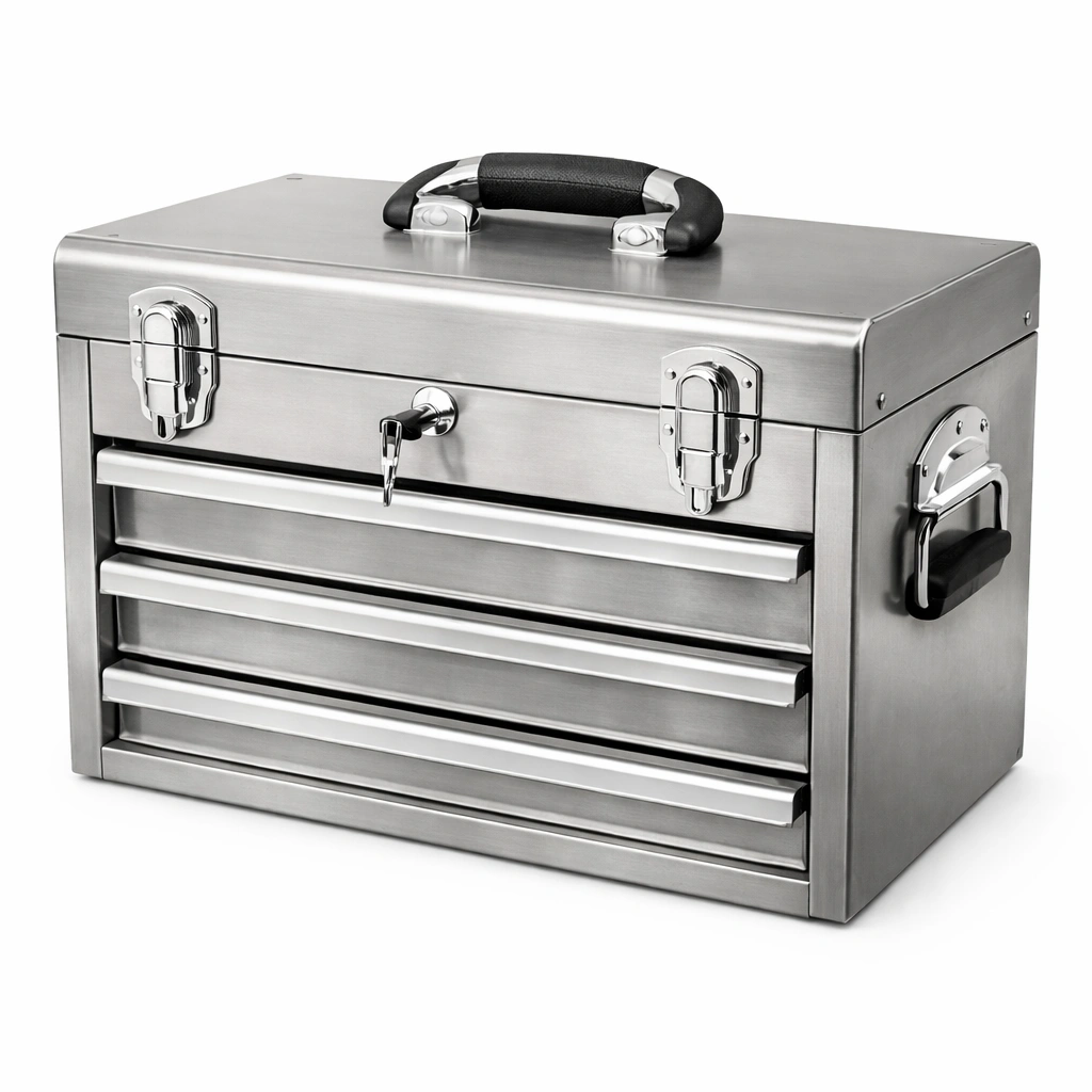 Werkzeugkiste Edelstahl mit 4 Schubladen und Gummigriffen