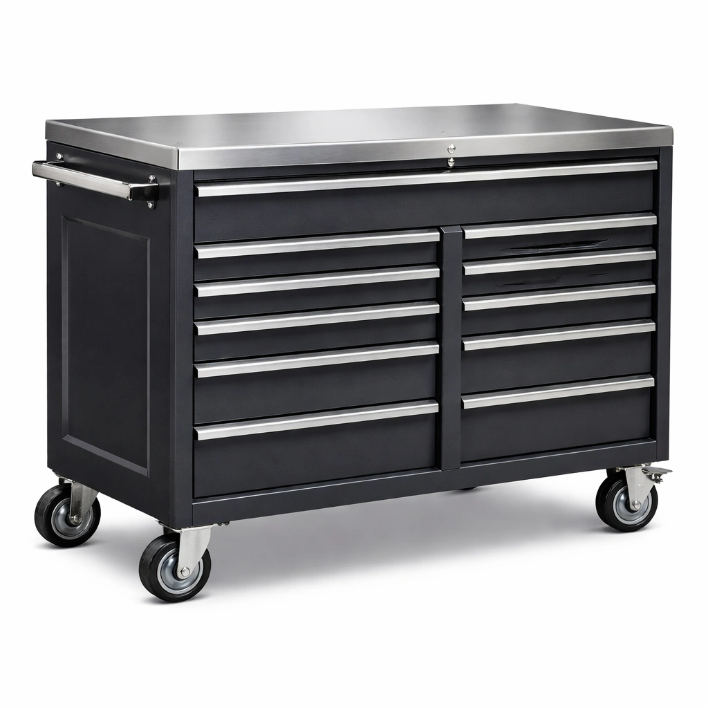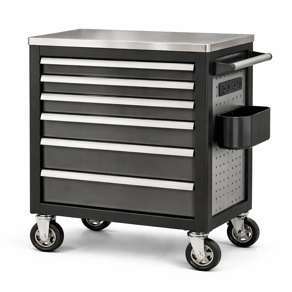 Werkzeugwagen Edelstahl Schwarz mit 7 Schubladen und Rollen