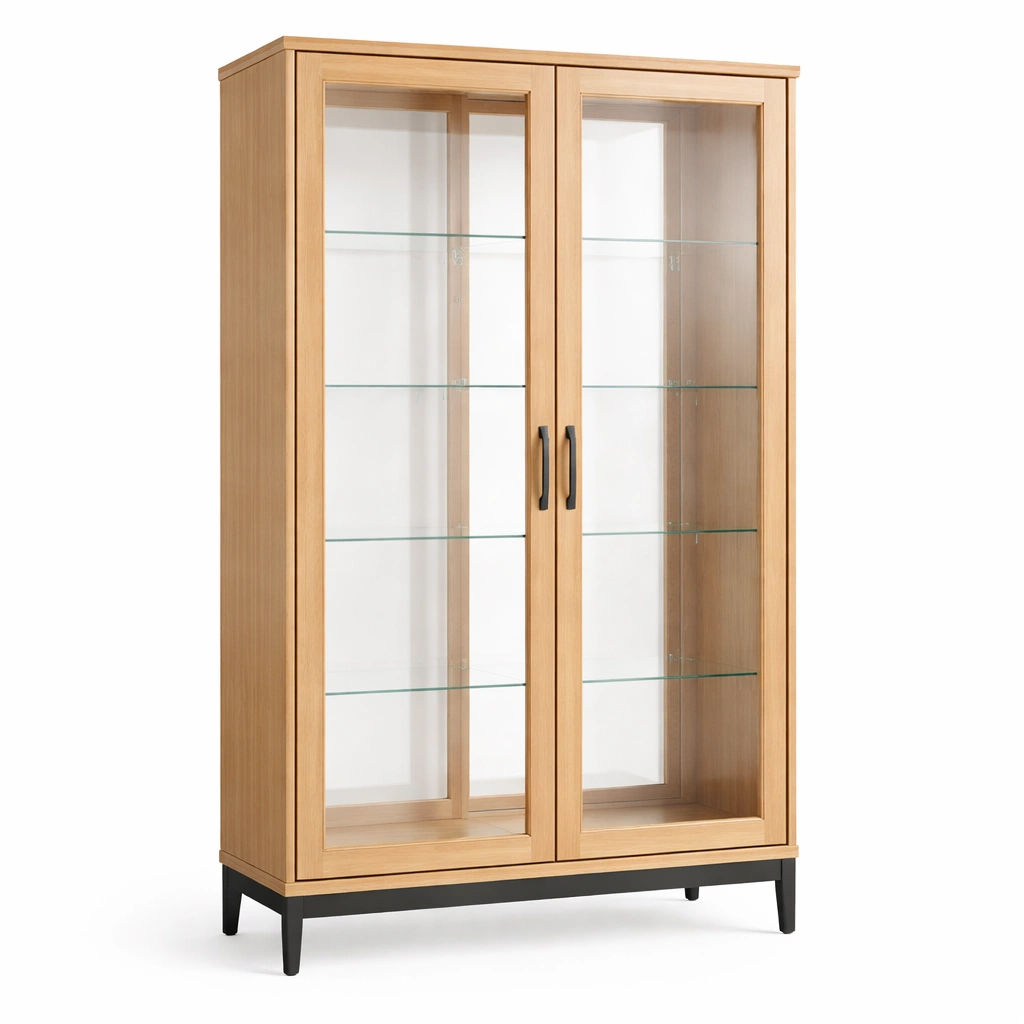 Vitrine Eichenholz mit Glastüren und Glasböden