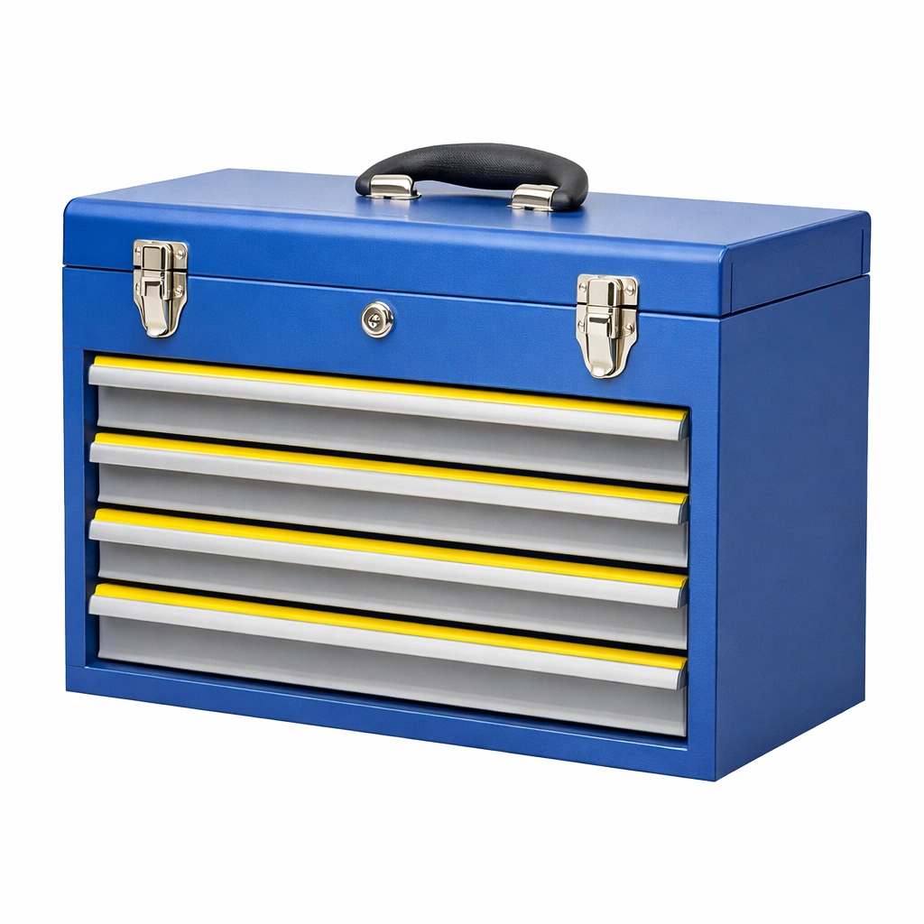 Werkzeugkasten mit vier Schubladen zur Aufbewahrung von Werkzeugen und Kleinteilen.